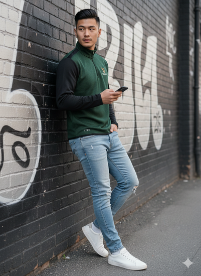 The Black/Green Guinness 1/4 Zip Perf Top combines functional design with a stylish aesthetic.