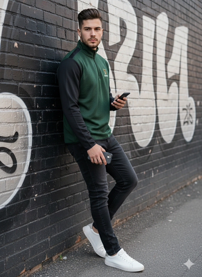 Black/Green Guinness 1/4 Zip Perf Top