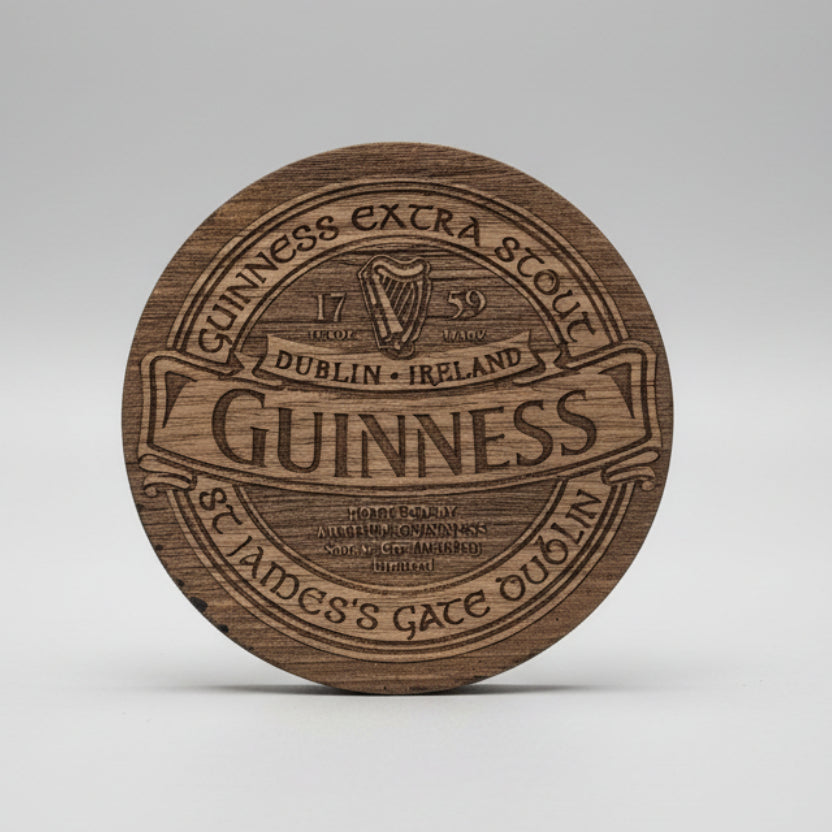 Crafted from premium wood, this Guinness coaster combines durability with iconic branding.